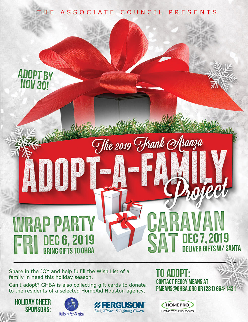Share in the joy and spread holiday cheer! Adopt a family by Nov. 30. Can't adopt an entire family? GHBA is also accepting gift cards in the amount of $25 to be donated to a HomeAid agency.