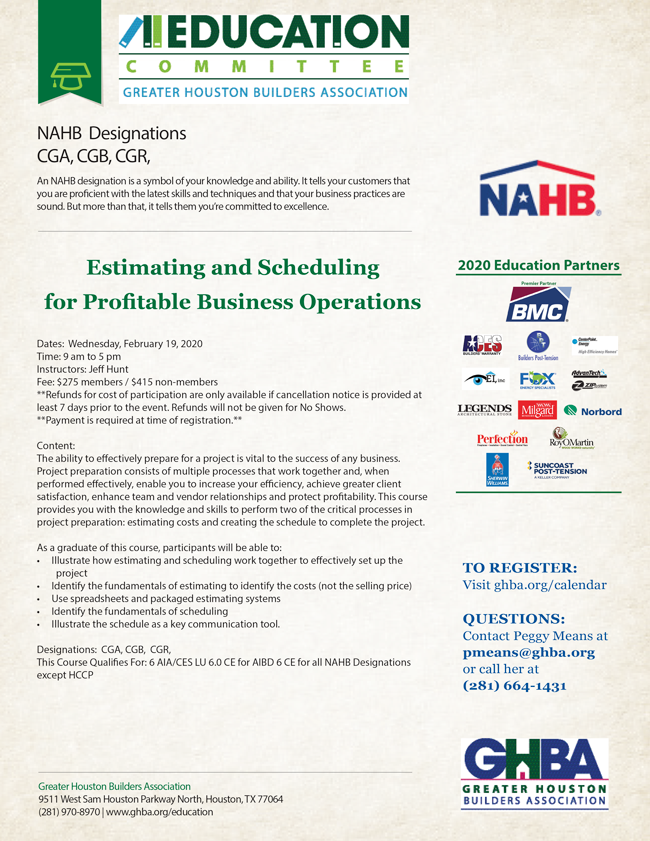 As a graduate of this course, participants will be able to: Illustrate how estimating and scheduling work together to effectively set up the project Identify the fundamentals of estimating to identify the costs (not the selling price) Use spreadsheets and packaged estimating systems Identify the fundamentals of scheduling Illustrate the schedule as a key communication tool.
